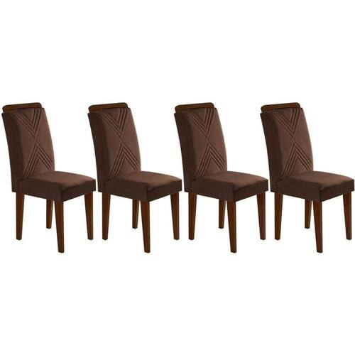 Cadeira Sala de Jantar Amsterdã Madeira Kit 4 Un Capuccino - Veludo Marrom - Rufato