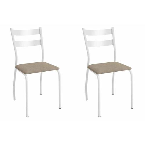 Cadeira Sala de Jantar Bali 2C141BR Aço Kit 2 Un Branco/Linho Bege Fendi - Kappesberg