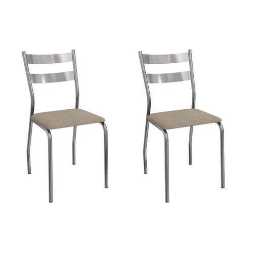 Cadeira Sala de Jantar Bali 2C141CR Aço Kit 2 Un Cromado/Linho Bege Fendi - Kappesberg