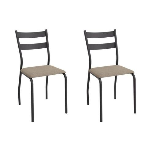 Cadeira Sala De Jantar Bali 2c141prf Aço Kit 2 Un Preto/linho Bege Fendi - Kappesberg
