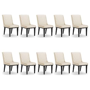 A Cadeira Sofia, é a opção ideal para quem quer um ambiente moderno e sofisticado! Um móvel super compacto, que se adequa perfeitamente em diversos ambientes. É uma ótima escolha para área de descanso, sala de estar, hall de entrada, espaço gourmet, varanda, recepção, escritório ou até mesmo para compor a mesa de jantar. Demais, né? Possui um design elegante, clássico e super convidativo, sem dúvidas ela dará um toque todo especial ao espaço que for posicionada. Feita em madeira maciça de eucalipto reflorestado, possui também base fixa em tom preto o que garante mais segurança, ótima sustentação e durabilidade à peça. O detalhe principal desta linda cadeira , fica por conta da alta-costura no encosto, em estilo matelassê. Um método aplicado no tecido de aparência acolchoada, o que confere um acabamento mais refinado à peça. Além do mais, os desenhos geométricos do tecido adicionam um toque luxuoso ao produto. Seu estofamento é feito com espuma D-23, revestida no Sintético, o que garante maciez e conforto, trazendo aquela sensação de abraço e suavidade ao sentar-se. E o que falar do tom Bege dessa cadeira ? Um tom extremamente elegante e versátil, perfeito para harmonizar com diferentes estilos de decoração. Afinal, não há nada melhor do que relaxar em uma Cadeira aconchegante, para ler um bom livro, ou assistir aquela série preferida, com o máximo de conforto possível, não é mesmo? Você irá se surpreender com o conforto da Cadeira Sofia. Aqui na D'Rossi, você encontra o que há de melhor em produtos, para você e sua família. Leve seu Kit 10 Cadeiras Sofia e arrase!