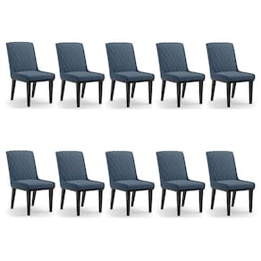 Cadeira Sala De Jantar Base Madeira Preto Kit 10 Sofia Suede D03 - D`rossi Cor Azul Marinho - Blush