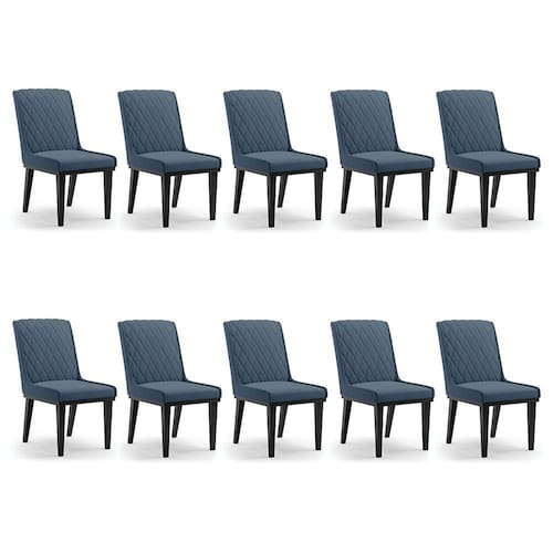 Cadeira Sala De Jantar Base Madeira Preto Kit 10 Sofia Suede D03 - D'rossi Cor Azul Marinho