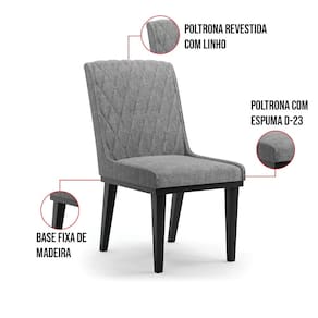 A Cadeira Sofia, é a opção ideal para quem quer um ambiente moderno e sofisticado! Um móvel super compacto, que se adequa perfeitamente em diversos ambientes. É uma ótima escolha para área de descanso, sala de estar, hall de entrada, espaço gourmet, varanda, recepção, escritório ou até mesmo para compor a mesa de jantar. Demais, né? Possui um design elegante, clássico e super convidativo, sem dúvidas ela dará um toque todo especial ao espaço que for posicionada. Feita em madeira maciça de eucalipto reflorestado, possui também base fixa em tom preto o que garante mais segurança, ótima sustentação e durabilidade à peça. O detalhe principal desta linda cadeira , fica por conta da alta-costura no encosto, em estilo matelassê. Um método aplicado no tecido de aparência acolchoada, o que confere um acabamento mais refinado à peça. Além do mais, os desenhos geométricos do tecido adicionam um toque luxuoso ao produto. Seu estofamento é feito com espuma D-23, revestida no Linho, o que garante maciez e conforto, trazendo aquela sensação de abraço e suavidade ao sentar-se. E o que falar da cor Grafite A26 dessa cadeira ? Um tom extremamente elegante e versátil, perfeito para harmonizar com diferentes estilos de decoração. Afinal, não há nada melhor do que relaxar em uma Cadeira aconchegante, para ler um bom livro, ou assistir aquela série preferida, com o máximo de conforto possível, não é mesmo? Você irá se surpreender com o conforto da Cadeira Sofia. Aqui na D'Rossi, você encontra o que há de melhor em produtos, para você e sua família. Leve seu Kit 02 cadeiras Sofia e arrase!