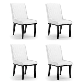 A Cadeira Sofia, é a opção ideal para quem quer um ambiente moderno e sofisticado! Um móvel super compacto, que se adequa perfeitamente em diversos ambientes. É uma ótima escolha para área de descanso, sala de estar, hall de entrada, espaço gourmet, varanda, recepção, escritório ou até mesmo para compor a mesa de jantar. Demais, né? Possui um design elegante, clássico e super convidativo, sem dúvidas ela dará um toque todo especial ao espaço que for posicionada. Feita em madeira maciça de eucalipto reflorestado, possui também base fixa em tom preto o que garante mais segurança, ótima sustentação e durabilidade à peça. O detalhe principal desta linda cadeira , fica por conta da alta-costura no encosto, em estilo matelassê. Um método aplicado no tecido de aparência acolchoada, o que confere um acabamento mais refinado à peça. Além do mais, os desenhos geométricos do tecido adicionam um toque luxuoso ao produto. Seu estofamento é feito com espuma D-23, revestida no Sintético, o que garante maciez e conforto, trazendo aquela sensação de abraço e suavidade ao sentar-se. Afinal, não há nada melhor do que relaxar em uma Cadeira aconchegante, para ler um bom livro, ou assistir aquela série preferida, com o máximo de conforto possível, não é mesmo? Você irá se surpreender com o conforto da Cadeira Sofia. Aqui na D'Rossi, você encontra o que há de melhor em produtos, para você e sua família. Leve seu Kit 04 Cadeiras Sofia e arrase!