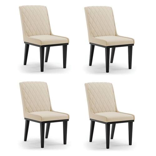 A Cadeira Sofia, é a opção ideal para quem quer um ambiente moderno e sofisticado! Um móvel super compacto, que se adequa perfeitamente em diversos ambientes. É uma ótima escolha para área de descanso, sala de estar, hall de entrada, espaço gourmet, varanda, recepção, escritório ou até mesmo para compor a mesa de jantar. Demais, né? Possui um design elegante, clássico e super convidativo, sem dúvidas ela dará um toque todo especial ao espaço que for posicionada. Feita em madeira maciça de eucalipto reflorestado, possui também base fixa em tom preto o que garante mais segurança, ótima sustentação e durabilidade à peça. O detalhe principal desta linda cadeira , fica por conta da alta-costura no encosto, em estilo matelassê. Um método aplicado no tecido de aparência acolchoada, o que confere um acabamento mais refinado à peça. Além do mais, os desenhos geométricos do tecido adicionam um toque luxuoso ao produto. Seu estofamento é feito com espuma D-23, revestida no Suede, o que garante maciez e conforto, trazendo aquela sensação de abraço e suavidade ao sentar-se. E o que falar da cor Bege dessa cadeira ? Um tom extremamente elegante e versátil, perfeito para harmonizar com diferentes estilos de decoração. Afinal, não há nada melhor do que relaxar em uma cadeira aconchegante, para ler um bom livro, ou assistir aquela série preferida, com o máximo de conforto possível, não é mesmo? Você irá se surpreender com o conforto da Cadeira Sofia. Aqui na D'Rossi, você encontra o que há de melhor em produtos, para você e sua família. Leve seu Kit 04 cadeiras Sofia e arrase!
