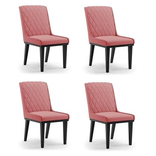 Cadeira Sala De Jantar Base Madeira Preto Kit 4 Sofia Suede D03 - D`rossi Cor Rose - Blush