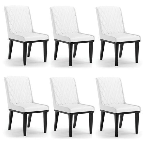 A Cadeira Sofia, é a opção ideal para quem quer um ambiente moderno e sofisticado! Um móvel super compacto, que se adequa perfeitamente em diversos ambientes. É uma ótima escolha para área de descanso, sala de estar, hall de entrada, espaço gourmet, varanda, recepção, escritório ou até mesmo para compor a mesa de jantar. Demais, né? Possui um design elegante, clássico e super convidativo, sem dúvidas ela dará um toque todo especial ao espaço que for posicionada. Feita em madeira maciça de eucalipto reflorestado, possui também base fixa em tom preto o que garante mais segurança, ótima sustentação e durabilidade à peça. O detalhe principal desta linda cadeira , fica por conta da alta-costura no encosto, em estilo matelassê. Um método aplicado no tecido de aparência acolchoada, o que confere um acabamento mais refinado à peça. Além do mais, os desenhos geométricos do tecido adicionam um toque luxuoso ao produto. Seu estofamento é feito com espuma D-23, revestida no Sintético, o que garante maciez e conforto, trazendo aquela sensação de abraço e suavidade ao sentar-se. E o que falar do tom Branco dessa cadeira ? Um tom extremamente elegante e versátil, perfeito para harmonizar com diferentes estilos de decoração. Afinal, não há nada melhor do que relaxar em uma Cadeira aconchegante, para ler um bom livro, ou assistir aquela série preferida, com o máximo de conforto possível, não é mesmo? Você irá se surpreender com o conforto da Cadeira Sofia. Aqui na D'Rossi, você encontra o que há de melhor em produtos, para você e sua família. Leve seu Kit 06 Cadeiras Sofia e arrase!