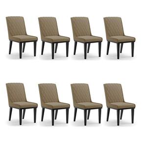 A Cadeira Sofia, é a opção ideal para quem quer um ambiente moderno e sofisticado! Um móvel super compacto, que se adequa perfeitamente em diversos ambientes. É uma ótima escolha para área de descanso, sala de estar, hall de entrada, espaço gourmet, varanda, recepção, escritório ou até mesmo para compor a mesa de jantar. Demais, né? Possui um design elegante, clássico e super convidativo, sem dúvidas ela dará um toque todo especial ao espaço que for posicionada. Feita em madeira maciça de eucalipto reflorestado, possui também base fixa em tom preto o que garante mais segurança, ótima sustentação e durabilidade à peça. O detalhe principal desta linda cadeira , fica por conta da alta-costura no encosto, em estilo matelassê. Um método aplicado no tecido de aparência acolchoada, o que confere um acabamento mais refinado à peça. Além do mais, os desenhos geométricos do tecido adicionam um toque luxuoso ao produto. Seu estofamento é feito com espuma D-23, revestida no Suede, o que garante maciez e conforto, trazendo aquela sensação de abraço e suavidade ao sentar-se. Afinal, não há nada melhor do que relaxar em uma Cadeira aconchegante, para ler um bom livro, ou assistir aquela série preferida, com o máximo de conforto possível, não é mesmo? Você irá se surpreender com o conforto da Cadeira Sofia. Aqui na D'Rossi, você encontra o que há de melhor em produtos, para você e sua família. Leve seu Kit 08 cadeiras Sofia e arrase!