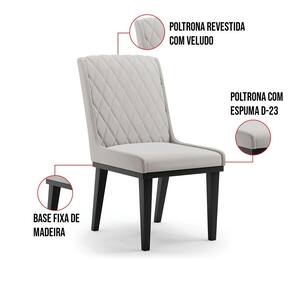 Cadeira Sala de Jantar Base Madeira Preto Sofia Veludo D03 - D`Rossi - Cinza