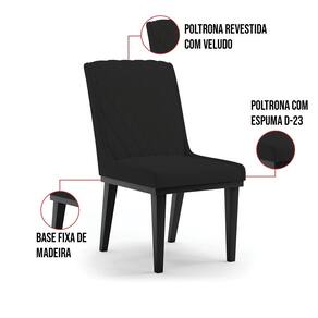 A Cadeira Sofia, é a opção ideal para quem quer um ambiente moderno e sofisticado! Um móvel super compacto, que se adequa perfeitamente em diversos ambientes. É uma ótima escolha para área de descanso, sala de estar, hall de entrada, espaço gourmet, varanda, recepção, escritório ou até mesmo para compor a mesa de jantar. Demais, né? Possui um design elegante, clássico e super convidativo, sem dúvidas ela dará um toque todo especial ao espaço que for posicionada. Feita em madeira maciça de eucalipto reflorestado, possui também base fixa em tom preto o que garante mais segurança, ótima sustentação e durabilidade à peça. O detalhe principal desta linda cadeira , fica por conta da alta-costura no encosto, em estilo matelassê. Um método aplicado no tecido de aparência acolchoada, o que confere um acabamento mais refinado à peça. Além do mais, os desenhos geométricos do tecido adicionam um toque luxuoso ao produto. Seu estofamento é feito com espuma D-23, revestida no Veludo, o que garante maciez e conforto, trazendo aquela sensação de abraço e suavidade ao sentar-se. E o que falar da cor Preto dessa cadeira ? Um tom extremamente elegante e versátil, perfeito para harmonizar com diferentes estilos de decoração. Afinal, não há nada melhor do que relaxar em uma Cadeira aconchegante, para ler um bom livro, ou assistir aquela série preferida, com o máximo de conforto possível, não é mesmo? Você irá se surpreender com o conforto da Cadeira Sofia. Aqui na D'Rossi, você encontra o que há de melhor em produtos, para você e sua família. Leve a sua e arrase!