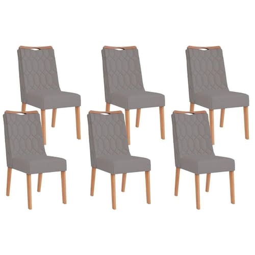 Cadeira Sala De Jantar Bia Kit 6 Un Cedro/suede Lunar - Dj Móveis
