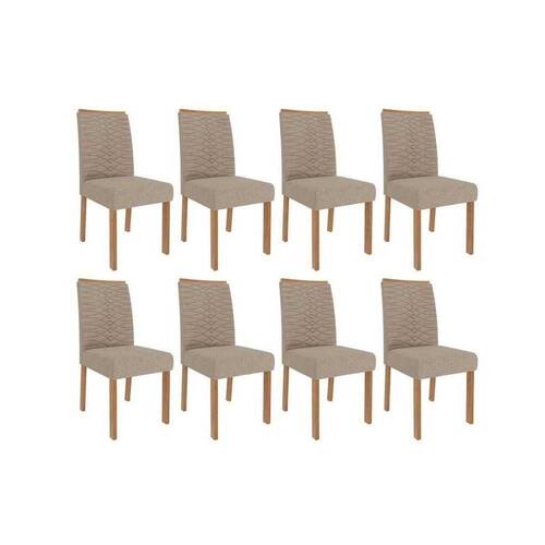 Cadeira Sala De Jantar Clarice Wood Kit 8 Un Carvalho/linho Bege - Cimol