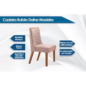 Cadeira Sala de Jantar Dafne Madeira Kit 2 Un Capuccino/Linho Turim - Rufato - Blush