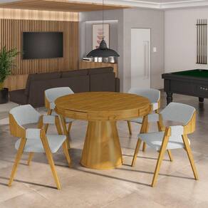 Cadeira Sala De Jantar E Jogos Carteados Madeira Maciça Poker Linho Cinza-mel G42 - Gran Belo