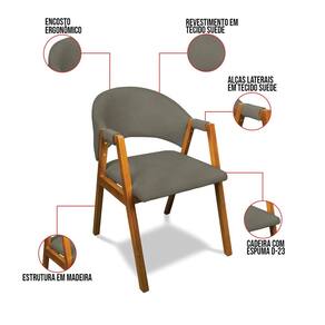 Transforme a sua sala de jantar com a Cadeira Yara, a escolha ideal para quem busca estilo, conforto e durabilidade. Com um design moderno e sofisticado, esta cadeira adiciona um toque de elegância a qualquer ambiente, seja na sala de jantar ou na cozinha. Sua base fixa em madeira e o revestimento em tecido Suede que combinam facilmente com diferentes estilos de decoração, tornando sua mesa ainda mais convidativa. Feita com madeira de reflorestamento de eucalipto, a Cadeira Yara é sustentável e robusta, suportando até 120 kg. Sua estrutura sólida, acabamento impecável e espuma de alta qualidade D-23 garantem um assento confortável para aproveitar cada refeição com prazer. Os braços de madeira, além de apresentarem um design vazado elegante, possuem detalhes revestidos do mesmo tecido da cadeira, proporcionando flexibilidade e conforto para apoiar seus braços, tornando-os ideais para longos jantares em família ou almoços tranquilos. Além de sua qualidade superior, a Cadeira Yara é leve e fácil de transportar, adaptando-se a cozinhas e salas de jantar de todos os tamanhos. Aproveite esta oportunidade para renovar o seu espaço com uma cadeira que une beleza, funcionalidade e um preço irresistível. Não perca tempo, garanta a sua antes que o estoque acabe e leve para casa uma peça que vai transformar seu ambiente!