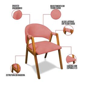 Transforme a sua sala de jantar com a Cadeira Yara, a escolha ideal para quem busca estilo, conforto e durabilidade. Com um design moderno e sofisticado, esta cadeira adiciona um toque de elegância a qualquer ambiente, seja na sala de jantar ou na cozinha. Sua base fixa em madeira e o revestimento em tecido Suede Rosê combinam facilmente com diferentes estilos de decoração, tornando sua mesa ainda mais convidativa. Feita com madeira de reflorestamento de eucalipto, a Cadeira Yara é sustentável e robusta, suportando até 120 kg. Sua estrutura sólida, acabamento impecável e espuma de alta qualidade D-23 garantem um assento confortável para aproveitar cada refeição com prazer. Os braços de madeira, além de apresentarem um design vazado elegante, possuem detalhes revestidos do mesmo tecido da cadeira, proporcionando flexibilidade e conforto para apoiar seus braços, tornando-os ideais para longos jantares em família ou almoços tranquilos. Além de sua qualidade superior, a Cadeira Yara é leve e fácil de transportar, adaptando-se a cozinhas e salas de jantar de todos os tamanhos. Aproveite esta oportunidade para renovar o seu espaço com uma cadeira que une beleza, funcionalidade e um preço irresistível. Não perca tempo, garanta a sua antes que o estoque acabe e leve para casa uma peça que vai transformar seu ambiente! Dimensões do Produto: Altura Total: 83 cm Largura Total: 57 cm Profundidade Total: 65 cm Peso: 10 kg Outras medidas: Altura do Encosto: 29 cm Largura do Encosto: 46 cm Largura do Assento: 49 cm Profundidade do Assento: 48 cm Altura do chão ao Assento: 45 cm Espessura do Assento: 5 cm Espessura do Encosto: 8 cm Espessura do Braço: 3 cm Especificações do Produto: Estrutura: Madeira Eucalipto Espuma: D-23 Tecido: Suede Peso Suportado: Até 120 Kg Tipo de Pés: Base de Madeira Tipo de Encosto: Fixo Tipo de Assento: Fixo Complexidade da Montagem: Baixo Montagem: O produto vai montado Garantia: 90 dias contra defeito de fabricação Instruções de Limpeza: Utilizar um pano limpo e levemente úmido Você irá Receber: 01 Cadeira Sala de Jantar - Entregue em: 01 Volume