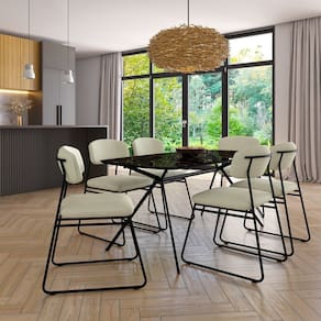 Cadeira Sala de Jantar Encosto e Assentos Estofados Linho Jaraguá Preto Fosco/Cinza Claro