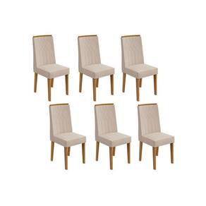 Cadeira Sala De Jantar Exclusive Kit 6 Un Rovere/amêndoa/linho Rinzai Bege - Lopas