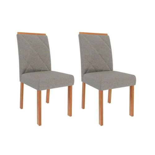 Cadeira Sala de Jantar Fernanda Wood Kit 2 Un Madeirado/Linho Grafite - Cimol - Cinza