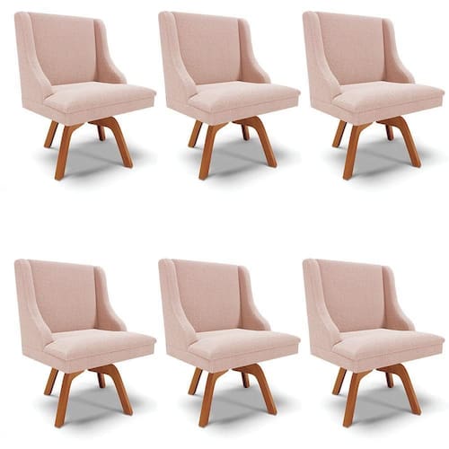 A Cadeira de Jantar Liz é a escolha perfeita para quem quer transformar a sua sala de jantar com muito estilo, conforto e durabilidade. Com um design moderno e sofisticado, essa cadeira é perfeita para compor ambientes de jantar ou cozinhas que pedem um toque de elegância. Sua Base Giratória de Madeira MM35 e o revestimento em tecido Bouclê Rosê se harmonizam facilmente com diferentes estilos de decoração, deixando sua mesa de jantar ainda mais convidativa. Feita com madeira de reflorestamento eucalipto e pinus, a Cadeira Liz é resistente e sustentável, suportando até 120 kg. Sua estrutura robusta, aliada ao acabamento impecável e à espuma de qualidade D-23, garante um assento confortável para aproveitar cada refeição com prazer. A Cadeira Liz é prática e fácil de transportar, com um peso leve e tamanho compacto, ideal para cozinhas e salas de jantar de todos os tamanhos. Além desse modelo, também temos a opção com base/pés e uma grande variedade de tecido/cores para atender ao seu estilo e conforto. E para deixar seu ambiente ainda mais harmonioso, oferecemos também kits especiais, incluindo: (2, 4 e 6 lugares) no mesmo design. Caso queira ajuda para escolher a melhor opção para o seu espaço, estamos à disposição! Aproveite e garanta já a sua.