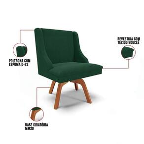 A Cadeira de Jantar Liz é a escolha perfeita para quem quer transformar a sua sala de jantar com muito estilo, conforto e durabilidade. Com um design moderno e sofisticado, essa cadeira é perfeita para compor ambientes de jantar ou cozinhas que pedem um toque de elegância. Sua Base Giratória de Madeira MM35 e o revestimento em tecido Bouclê Verde se harmonizam facilmente com diferentes estilos de decoração, deixando sua mesa de jantar ainda mais convidativa. Feita com madeira de reflorestamento eucalipto e pinus, a Cadeira Liz é resistente e sustentável, suportando até 120 kg. Sua estrutura robusta, aliada ao acabamento impecável e à espuma de qualidade D-23, garante um assento confortável para aproveitar cada refeição com prazer. A Cadeira Liz é prática e fácil de transportar, com um peso leve e tamanho compacto, ideal para cozinhas e salas de jantar de todos os tamanhos. Além desse modelo, também temos a opção com base/pés e uma grande variedade de tecido/cores para atender ao seu estilo e conforto. E para deixar seu ambiente ainda mais harmonioso, oferecemos também kits especiais, incluindo: (2, 4 e 6 lugares) no mesmo design. Caso queira ajuda para escolher a melhor opção para o seu espaço, estamos à disposição! Aproveite e garanta já a sua.
