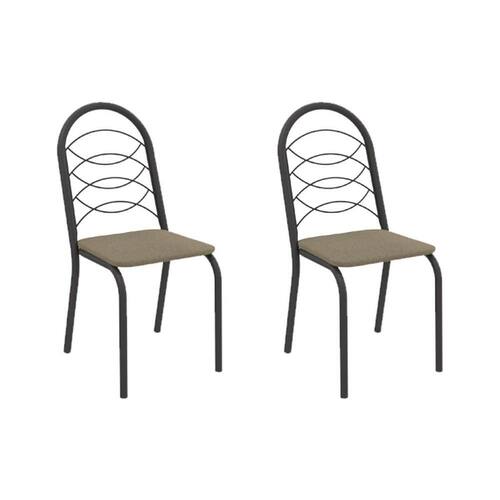 Cadeira Sala de Jantar Holanda 2C009PRF Aço Kit 2 Un Preto/Boucle Bege Fendi - Kappesberg