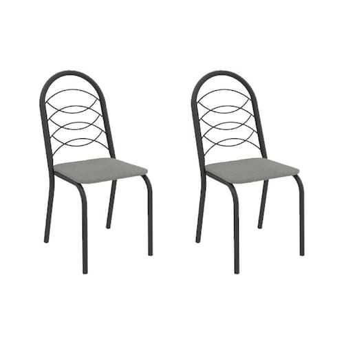 Cadeira Sala de Jantar Holanda 2C009PRF Aço Kit 2 Un Preto/Boucle Cinza - Kappesberg
