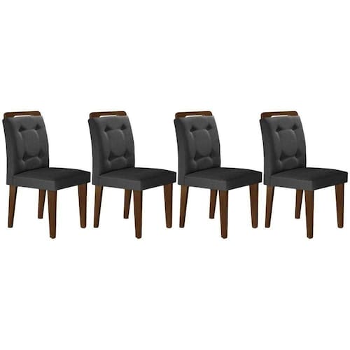 Cadeira Sala De Jantar Imperatriz Madeira Kit 4 Un Capuccino - Linho Grafite - Rufato
