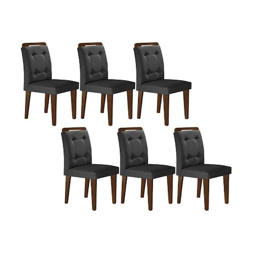 Cadeira Sala de Jantar Imperatriz Madeira Kit 6 Un Capuccino - Linho Grafite - Rufato