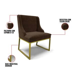 Cadeira Sala de Jantar Industrial Dour Kit 4 Liz Suede D03 - D`Rossi - Marrom