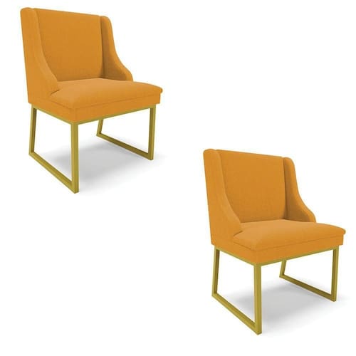 Dê um novo ar à sua sala de jantar e cozinha com a Cadeira Liz, uma opção perfeita para quem valoriza estilo, conforto e durabilidade. Com um design moderno e sofisticado, essa cadeira eleva a elegância de qualquer espaço, seja na sala de jantar ou na cozinha. Sua base metálica industrial em dourado e o revestimento em tecido Bouclê Mostarda harmonizam facilmente com diversos estilos de decoração, tornando sua mesa. Fabricada com madeira de eucalipto e pinus, a Cadeira Liz não é apenas robusta e capaz de suportar até 120 kg, mas também ecologicamente responsável. Seu acabamento impecável inclui espuma de alta qualidade D-23, proporcionando um assento confortável para que você possa desfrutar de cada refeição com prazer sendo ideal para jantares prolongados em família. Além de sua qualidade superior, a Cadeira Liz é leve e fácil de movimentar, sendo perfeita para cozinhas e salas de jantar de todos os tamanhos. Não perca a chance de renovar seu ambiente com uma cadeira que combina beleza, funcionalidade e um preço acessível. Garanta seu Kit 2 Poltronas antes que o estoque acabe e transforme seu espaço, leve para casa uma peça que vai transformar seu ambiente! Dimensões do Produto: Altura Total: 85 cm Largura Total: 55 cm Profundidade Total: 55 cm Peso: 15 kg Outras medidas: Altura do Encosto: 40 cm Largura do Assento: 45 cm Profundidade do Assento: 50 cm Altura do chão ao Assento: 45 cm Especificações do Produto: Estrutura: Madeira Eucalipto Espuma: D-23 Tecido: Bouclê Peso Suportado: Até 120 Kg Tipo de Pés: Base Metálica Industrial Dourado Complexidade da Montagem: Baixo Montagem: O produto vai montado, apenas parafusar a base Garantia: 90 dias contra defeito de fabricação Instruções de Limpeza: Utilizar um pano limpo e levemente úmido Você irá Receber: 02 Cadeiras Sala de Jantar - Entregue em: 02 Volumes