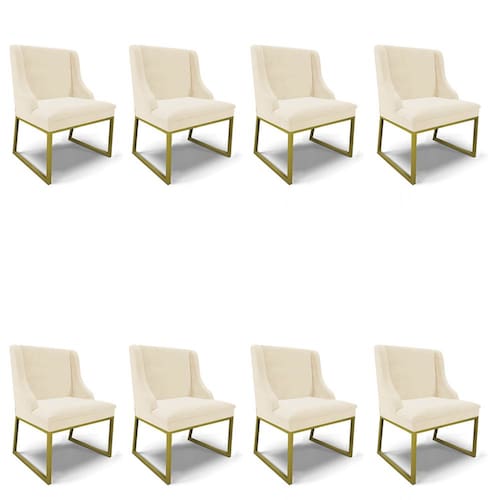 Dê um novo ar à sua sala de jantar e cozinha com a Cadeira Liz, uma opção perfeita para quem valoriza estilo, conforto e durabilidade. Com um design moderno e sofisticado, essa cadeira eleva a elegância de qualquer espaço, seja na sala de jantar ou na cozinha. Sua base metálica industrial em dourado e o revestimento em tecido Veludo Bege harmonizam facilmente com diversos estilos de decoração, tornando sua mesa. Fabricada com madeira de eucalipto e pinus, a Cadeira Liz não é apenas robusta e capaz de suportar até 120 kg, mas também ecologicamente responsável. Seu acabamento impecável inclui espuma de alta qualidade D-23, proporcionando um assento confortável para que você possa desfrutar de cada refeição com prazer sendo ideal para jantares prolongados em família. Além de sua qualidade superior, a Cadeira Liz é leve e fácil de movimentar, sendo perfeita para cozinhas e salas de jantar de todos os tamanhos. Não perca a chance de renovar seu ambiente com uma cadeira que combina beleza, funcionalidade e um preço acessível. Garanta seu Kit 8 Poltronas antes que o estoque acabe e transforme seu espaço, leve para casa uma peça que vai transformar seu ambiente!