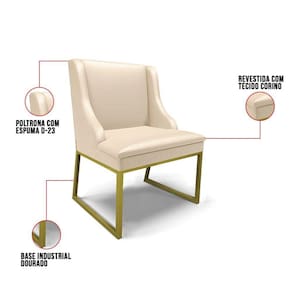 Cadeira Sala De Jantar Industrial Dourado Liz Sintético D03 - D'rossi Bege