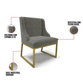 Cadeira Sala de Jantar Industrial Dourado Liz Suede D03 - D`Rossi - Grafite