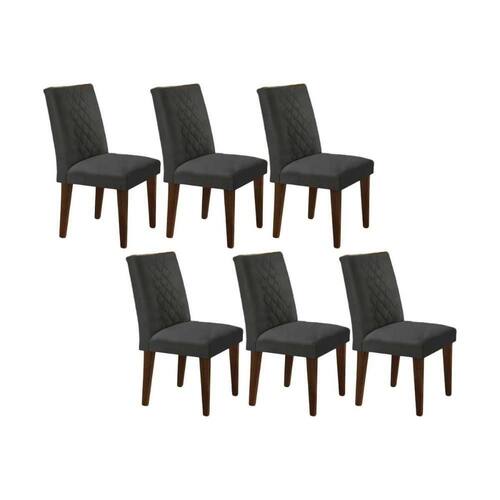 Cadeira Sala de Jantar Jade Madeira Kit 6 Un Capuccino - Linho Grafite - Rufato