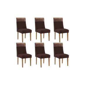 Cadeira Sala De Jantar Jaspe Kit 6 Un Madeira Capuccino/suede Marrom/corano Capuccino - Rufato