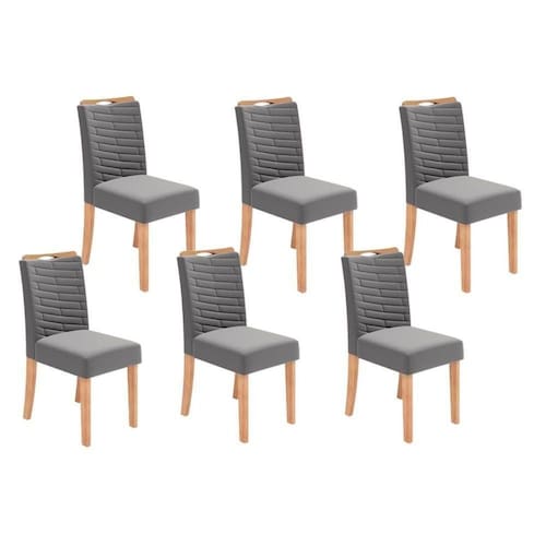 Cadeira Sala De Jantar Julia Kit 6 Un Cedro/suede Lunar - Dj Móveis