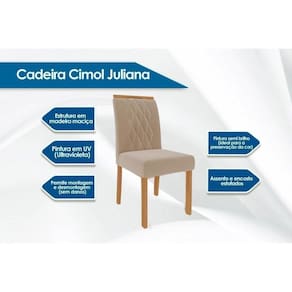 Cadeira Sala de Jantar Juliana Madeira Kit 2 Un Nature/Linho Bege - Cimol