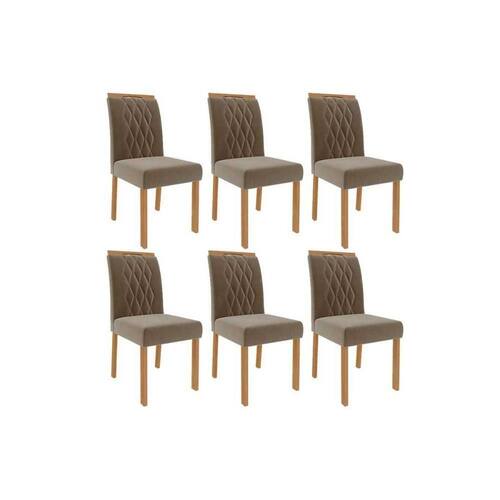 Cadeira Sala De Jantar Juliana Wood Kit 6 Un Carvalho/suede Joli Capuccino - Cimol