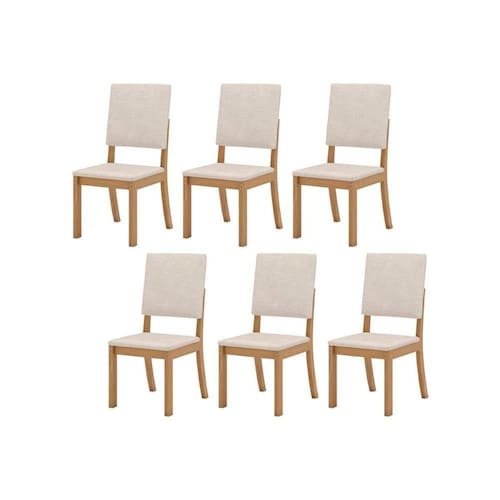 Cadeira Sala De Jantar Milla Kit 6 Un Nature/veludo Light Linho - Henn