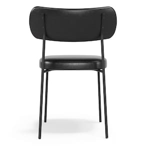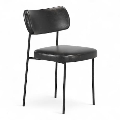 Seu encosto e assento estofados com espuma laminada garantem maior conforto mesmo em longos períodos de uso. A estrutura fixa em aço carbono com pintura epóxi preta confere durabilidade, resistência e um visual sofisticado que combina com diversos estilos de decoração.