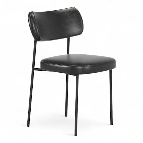 Seu encosto e assento estofados com espuma laminada garantem maior conforto mesmo em longos períodos de uso. A estrutura fixa em aço carbono com pintura epóxi preta confere durabilidade, resistência e um visual sofisticado que combina com diversos estilos de decoração.