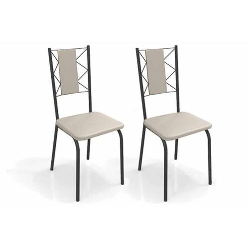 Cadeira Sala De Jantar Lisboa 2c076prf Aço Kit 2 Un Preto/ano Bege - Kappesberg