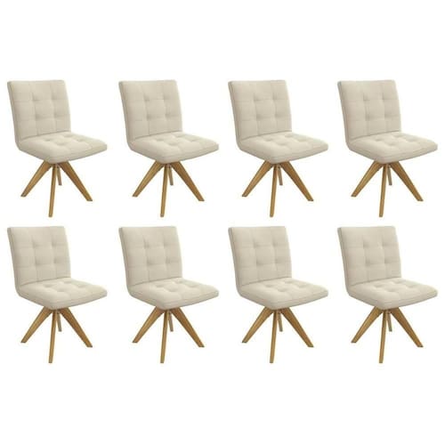 Cadeira Sala De Jantar Nice 1c001ca Premium Madeira Maciça Kit 8 Un Carvalho/linho Bege Argila - Kappesberg