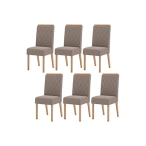 Cadeira Sala de Jantar Nina Kit 6 Un Nature/Veludo Light Marrom Amêndoa - Henn