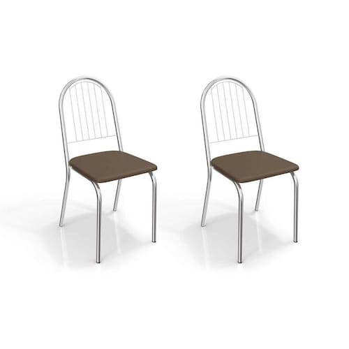 Cadeira Sala de Jantar Noruega 2C077 Kit 2 Un Cromado/Courano Marrom - Kappesberg
