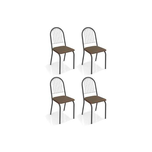 Cadeira Sala de Jantar Noruega 4C077PRF Kit 4 Un Preto Fosco/Courano Marrom - Kappesberg
