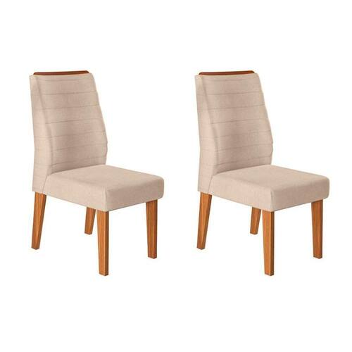 Cadeira Sala de Jantar Ondina Kit 2 Un Carvalho Nobre/Linho Saara - DJ Móveis - Blush