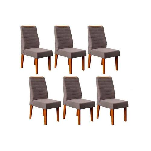 Cadeira Sala De Jantar Ondina Kit 6 Un Freijó/veludo Lunar - Dj Móveis